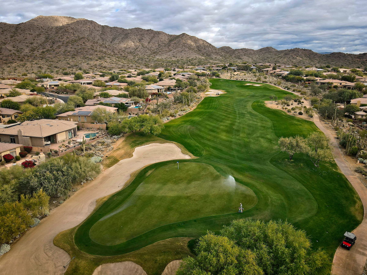The Persimmon Course, which opened to rave reviews in 1999 as a Scottsdale private golf course, features elevation changes from 50 feet to 300 feet. It’s the more traditional of the two Anthem, Arizona golf courses, which features a signature, 18,000 square foot double green that concludes both the front and back nines. Perhaps the most notable is the final stretch of holes 15 through 18 that makes for a strong finish.