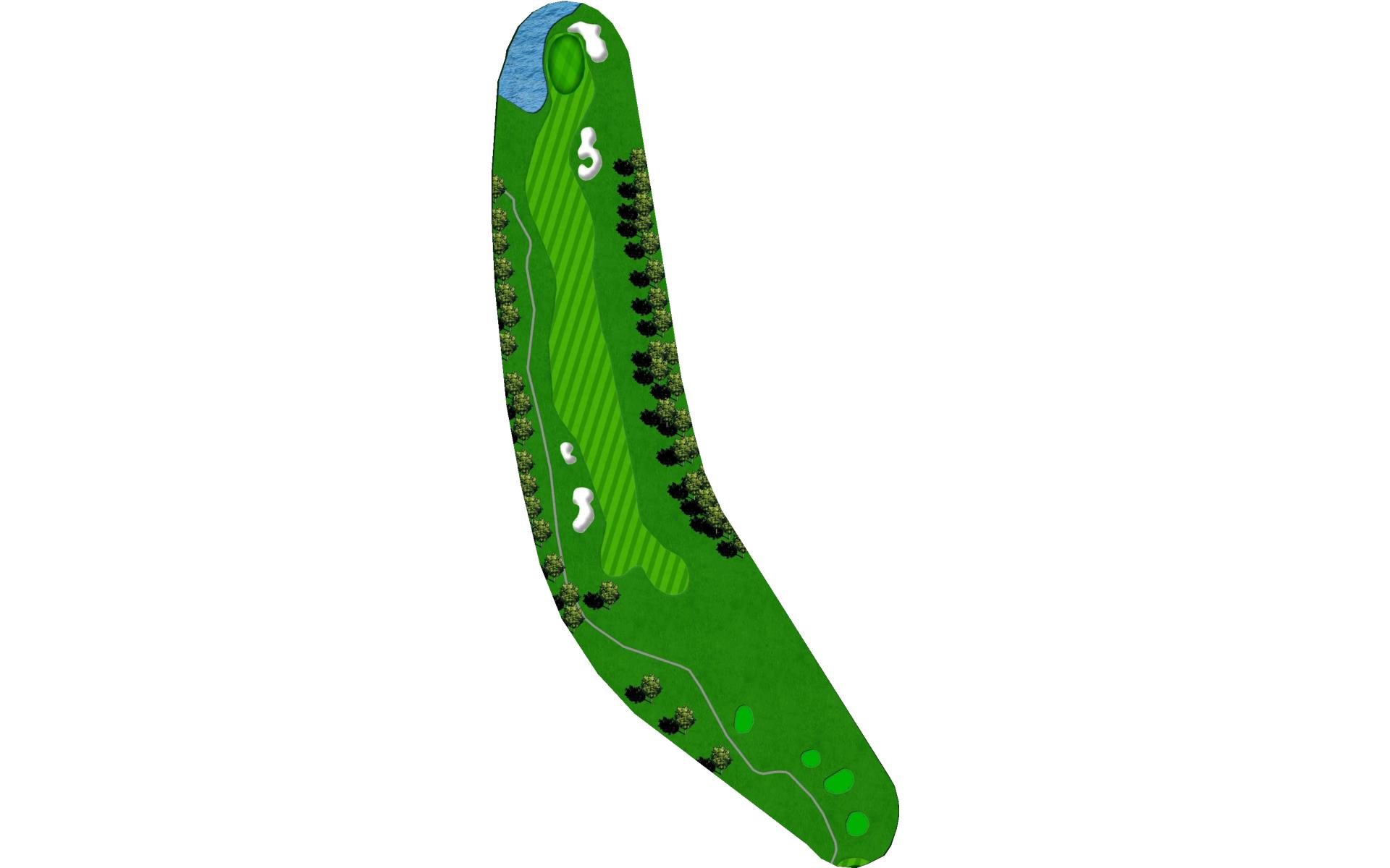 A fairly simple par 3, the sixth features a green with a spine down the middle. Players who find themselves on the wrong side may find two-putting difficult.