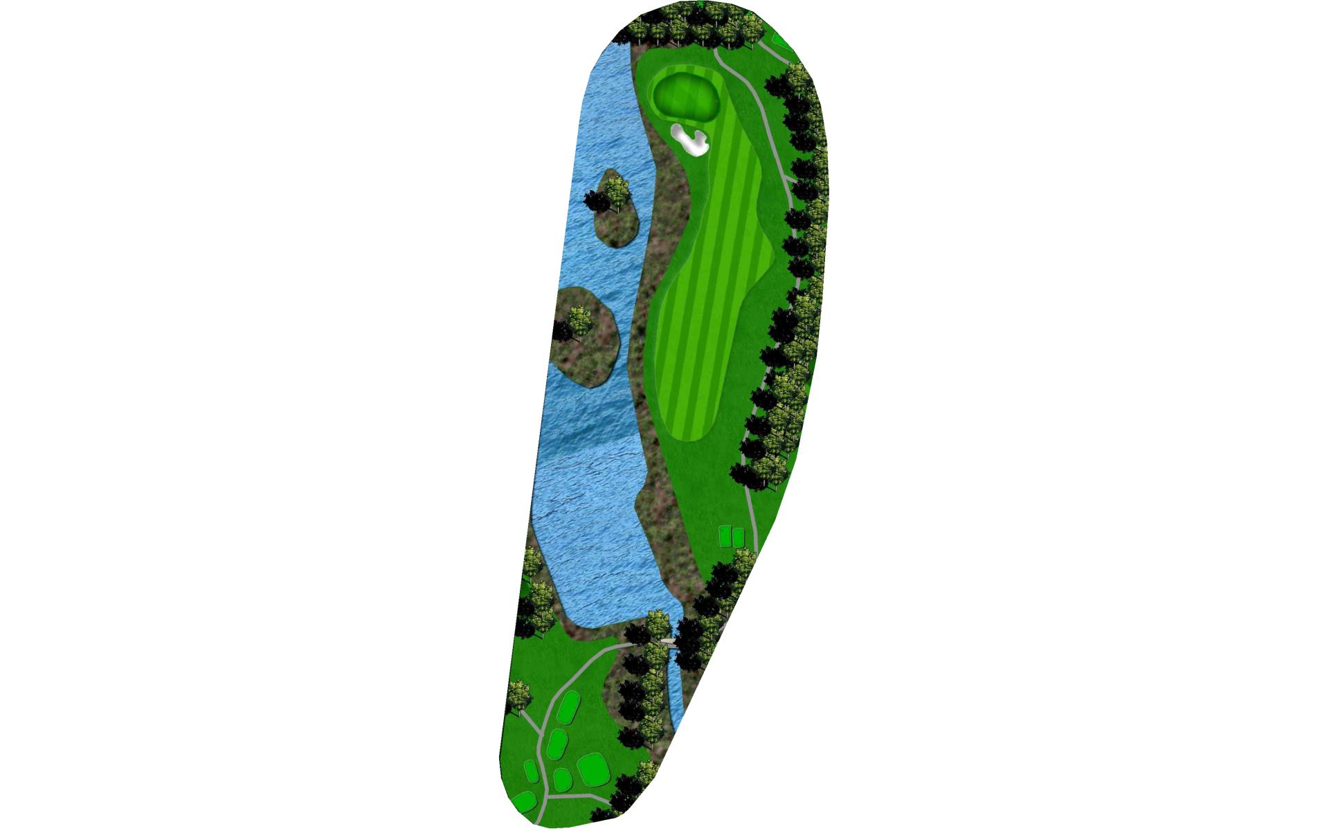 A heroic carry is what’s now required from the back tees on number 9, as that championship tee box has been angled to bring more of the water in play off the tee. Those not playing from the back tees will still want to think heroically, as players who bail out right with their drives will be left with approach shots